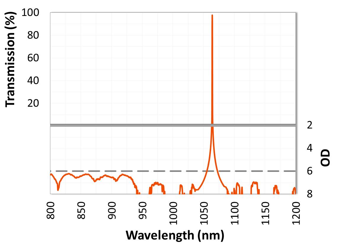圖3.具有OD6阻斷的超窄帶濾波器,用于1064 nm Nd:YAG激光器。